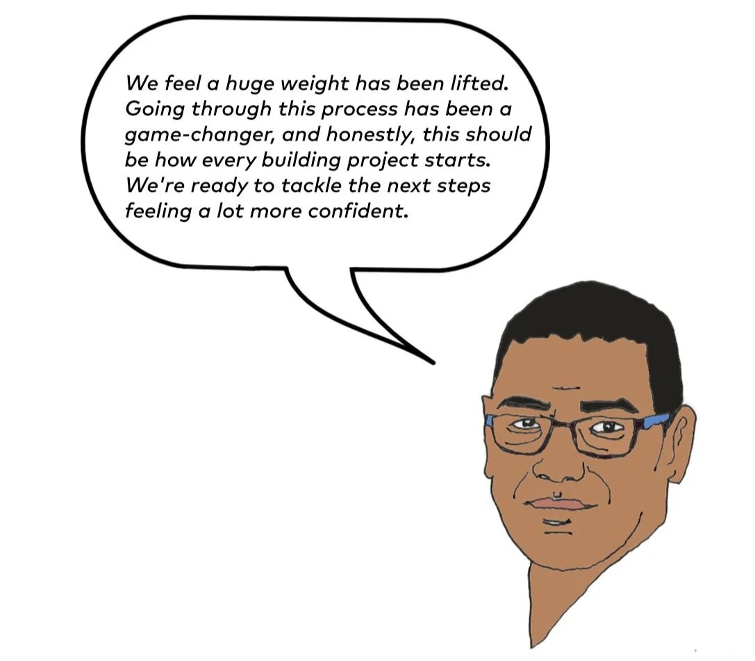75-80% of building projects end up over budget due to poor initial planning. This, in turn, leads to poor quality, conflict, and an out-of-control project. Yet most architects and builders will rush their clients into the design phase to make a competitive offer. This means they have no incentive to spend time finding out what people really want and to work through a problem practically and creatively.